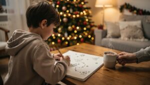 Une “boîte à questions” : l’enfant écrit ou dicte ses questions (sur le Père Noël, la logistique, la famille). Vous y répondez à un moment prévu, pas à 22h45.