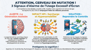 • Muriel Escribe (document interne) – 2025 (date simulée) – L’Usage excessif du smartphone et les mécanismes de défense du cerveau HPI / Génération Écrans